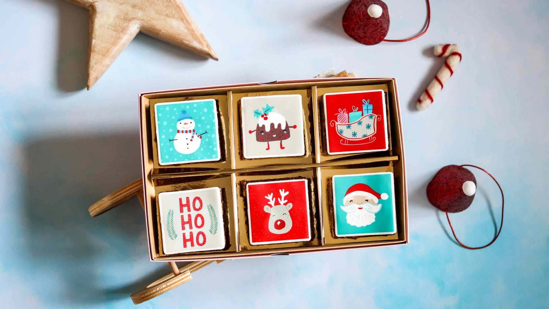 Indulge in a selection of 6 delectable Christmas brownies, from Bumble&Goose, delivered right to your doorstep. Perfect for spreading festive cheer!