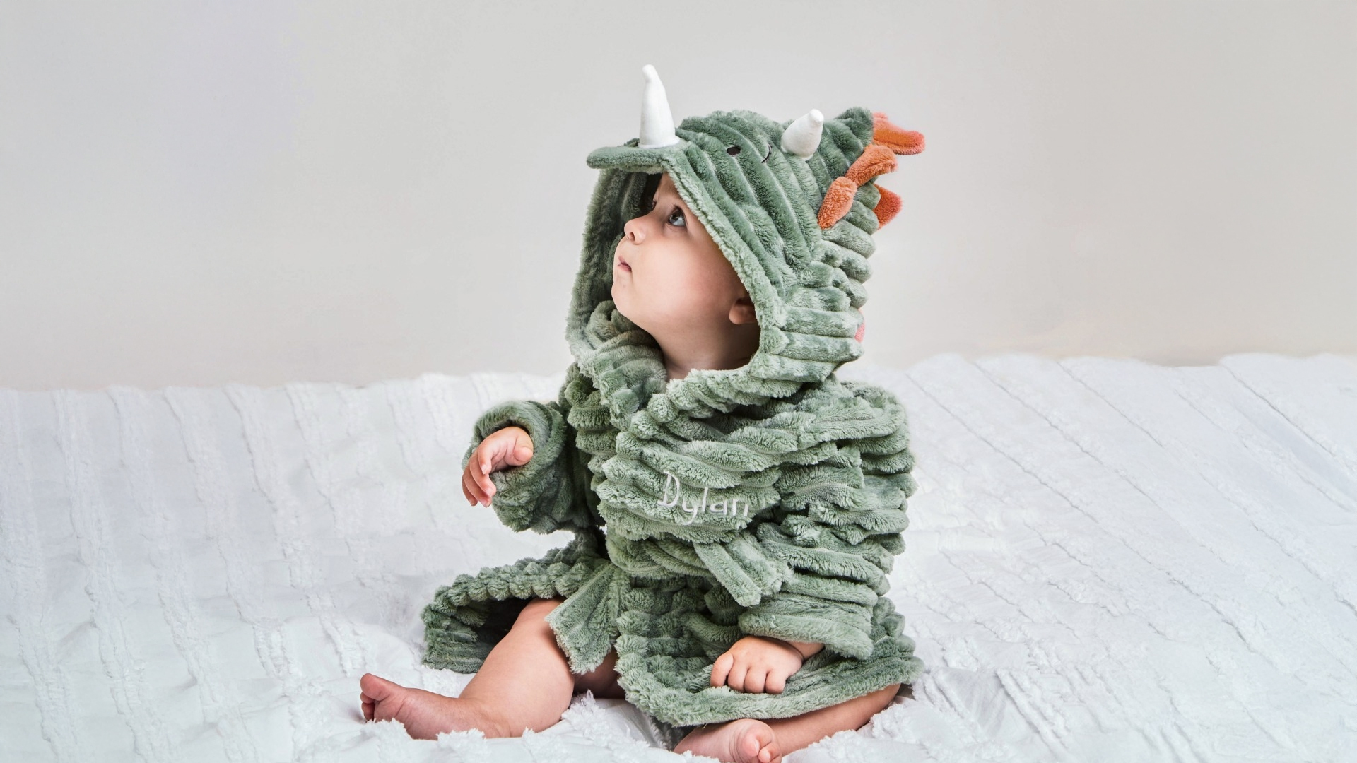 Make bedtime a fun-filled adventure with this marvellous personalised dinosaur dressing gown. This super-soft robe is made from the most snuggly materials, enticing your little one to get wrapped up after they’ve had a splash in the bath. Designed to make your little monster look just like their favourite triceratops dinosaur, with a dark green body, three white horns and bright orange spikes that adorn the hood, this dressing gown is exciting and practical. Treat dino fans to the best bedtime ever by bundling them into this belted robe before you sit down for a story.