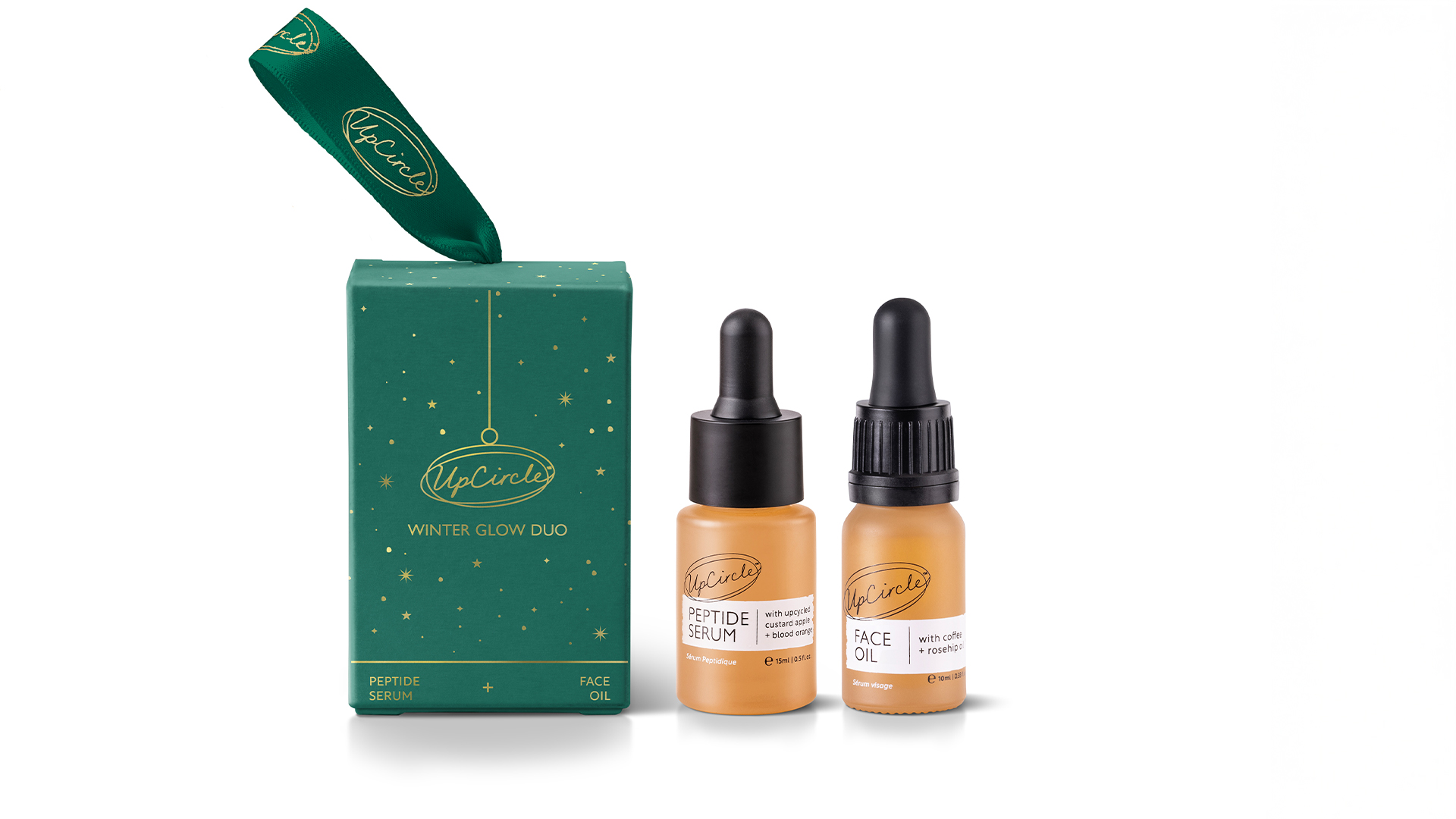 UpCircle’s Winter Glow Duo is the ultimate luxury for glowing skin. Nestled inside a sparkling green and gold bauble with a ribbon made from recycled plastic, it’s gift-ready with zero fuss. Inside, you’ll find UpCircle’s cult-favourites, just smaller! Peptide Serum (13ml) and Organic Face Oil (10ml), your perfect partners for hydrated, radiant skin all winter long.
