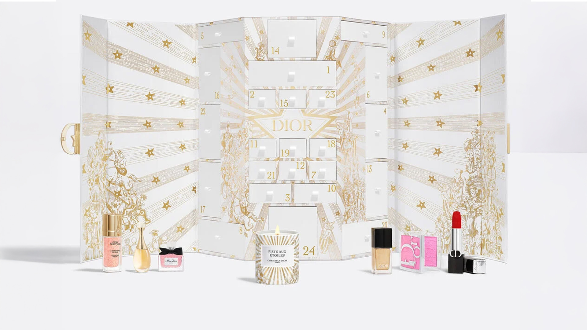 For the Christmas season, the House of Dior exclusively presents a magical Dior Advent Calendar that recreates the facade of the historic boutique at 30 Avenue Montaigne, adorned with dazzling ornaments to mark the occasion. A poetic picture of Paris, this exclusive Dior Advent Calendar houses 24 miniature creations from the House of Dior, including refined fragrances, sophisticated makeup and skincare products and a scented candle.