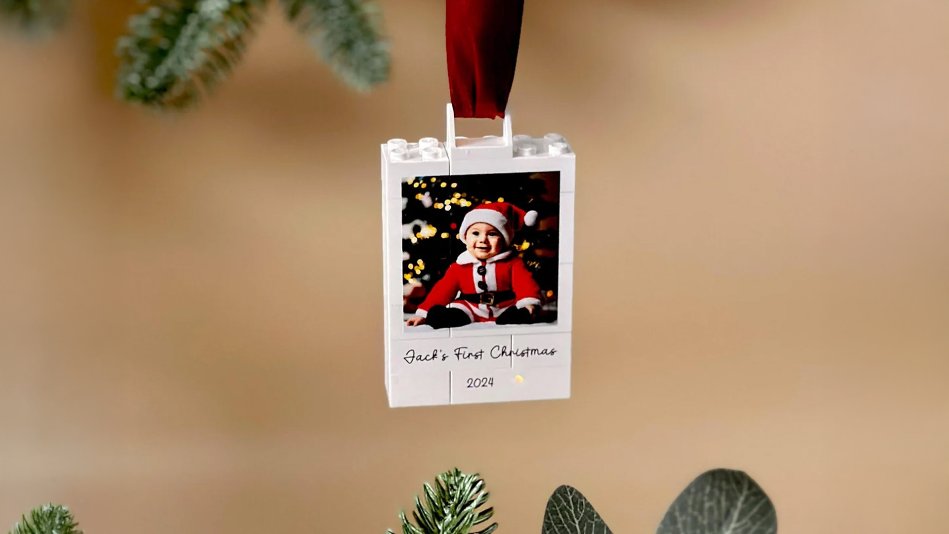 Personalised LEGO® Brick Polaroid Style Photo Block Bauble, £19.99