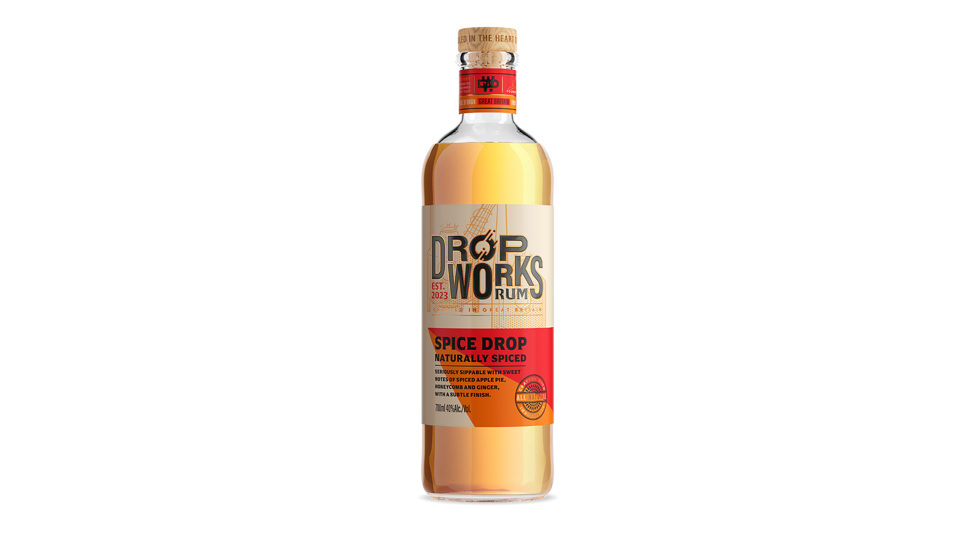 Bold flavours are created with the finest raw ingredients, fermented, distilled and aged in Britain at our own epic distillery. DropWorks experiment, discover and create the most joyful drops of rum imaginable. Notes of spiced apple pie including ripe red apples, honeycomb and ginger, with a subtly sweet finish.