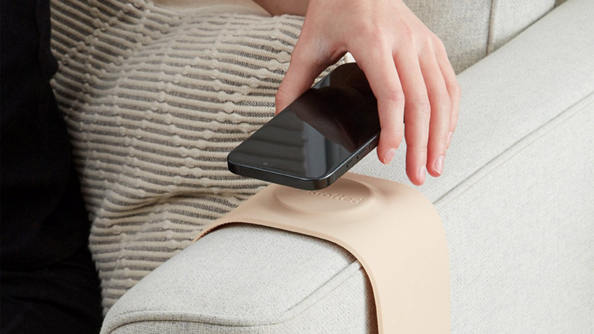 Meet the home essential you never knew you needed. Draping elegantly over the arm of your sofa, the Krafted Couch Charger brings effortless power to your favourite spot. Its sleek silicone finish grips gently in place while your phone recharges. A rare piece of tech that feels as good as it looks, and every bit as considered as a well-placed throw.